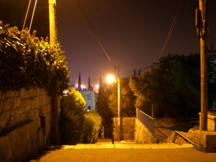 Walking up from Mr. Dunbar’s class on Hagafen to the Hatzionut-Hillel area – if you’ve ever done it at night you may recognize these places.